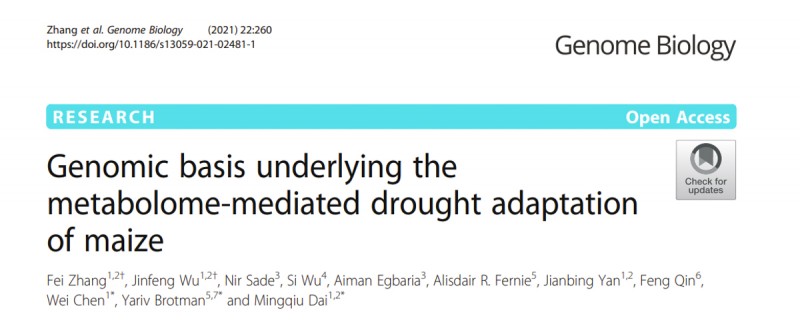 该研究以“Genomic basis underlying the metabolome-mediated drought adaptation of maize”为题在国际学术期刊 Genome Biology上发表。